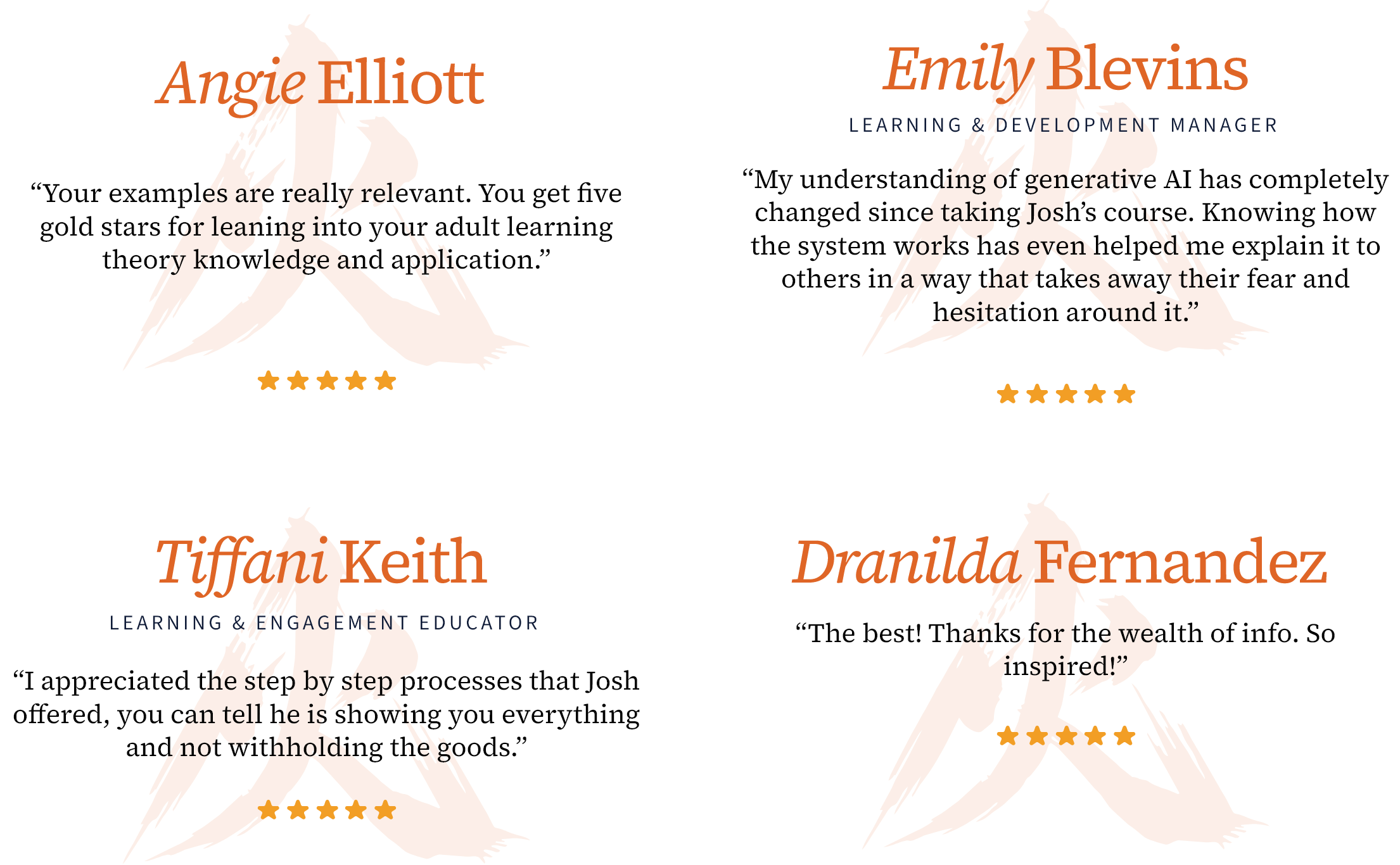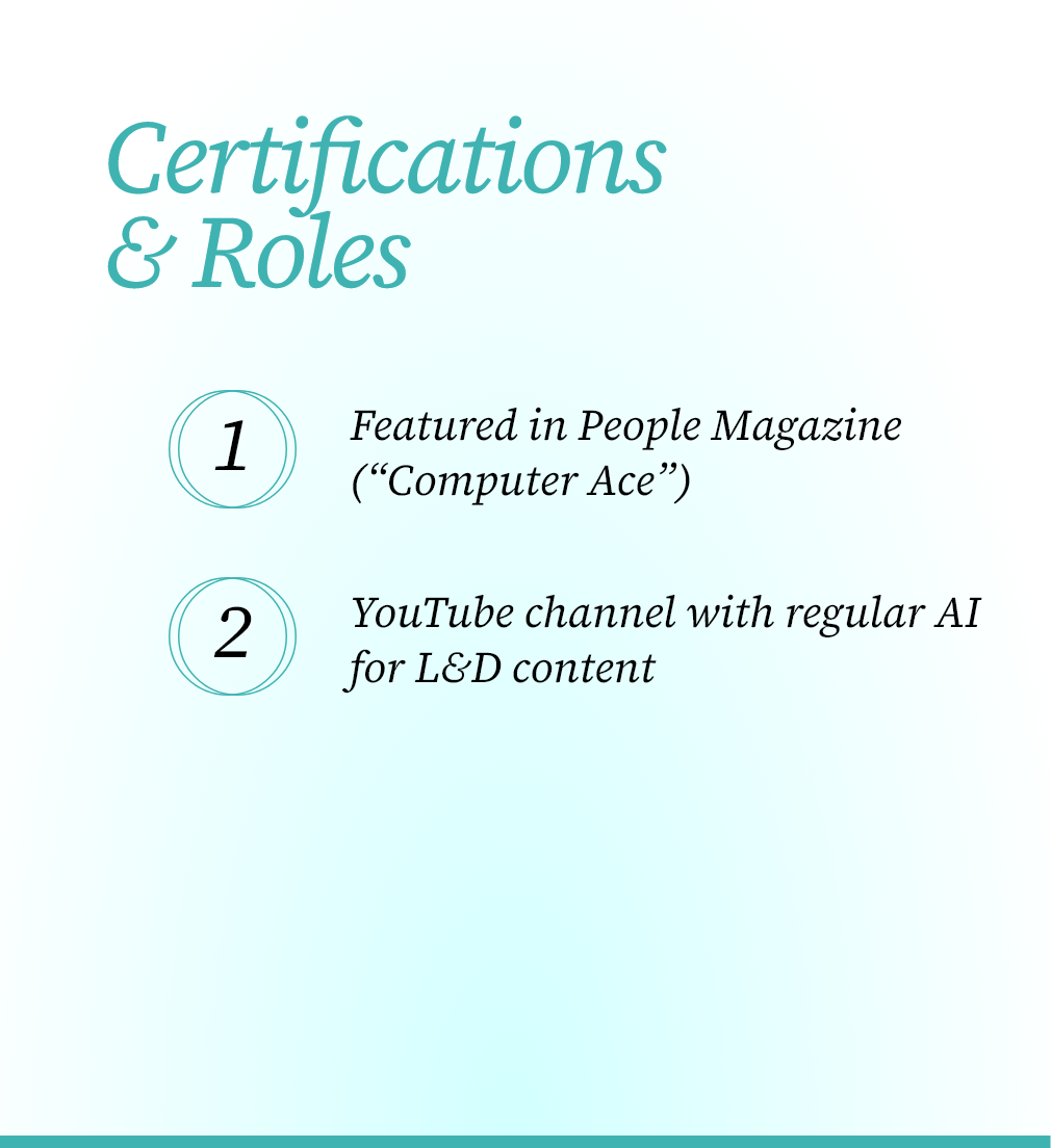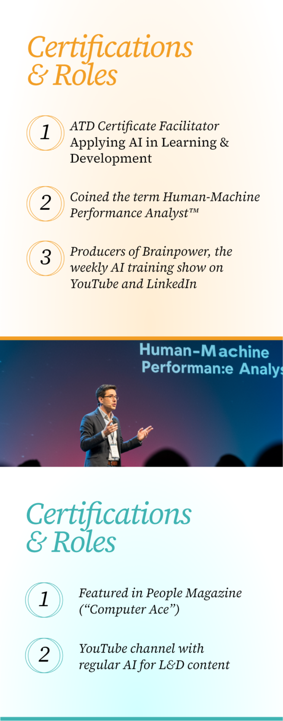 Our Founder & Chief Learning Strategist, Josh Cavalier, has designed learning solutions for Fortune 500 companies. He’s built training programs for government agencies. He’s sat in the meetings where leadership wanted “something innovative” but couldn’t define what that meant. Our team has navigated every technology shift this profession has seen — from CD-ROMs to LMS platforms to mobile learning to video to, now, generative AI.